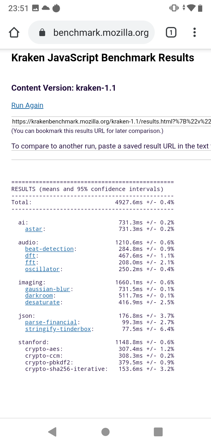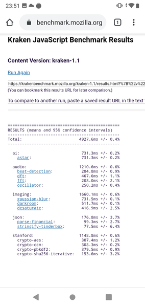 | Mozilla Kraken (мс, меньше — лучше) | 4928 | 3241 | 4542 | 4507 | 4618 |