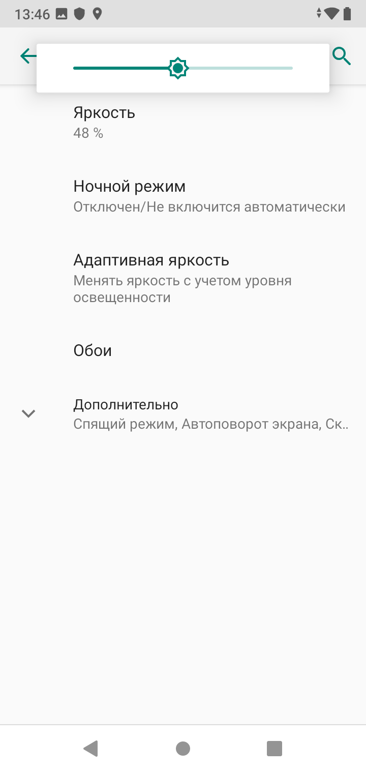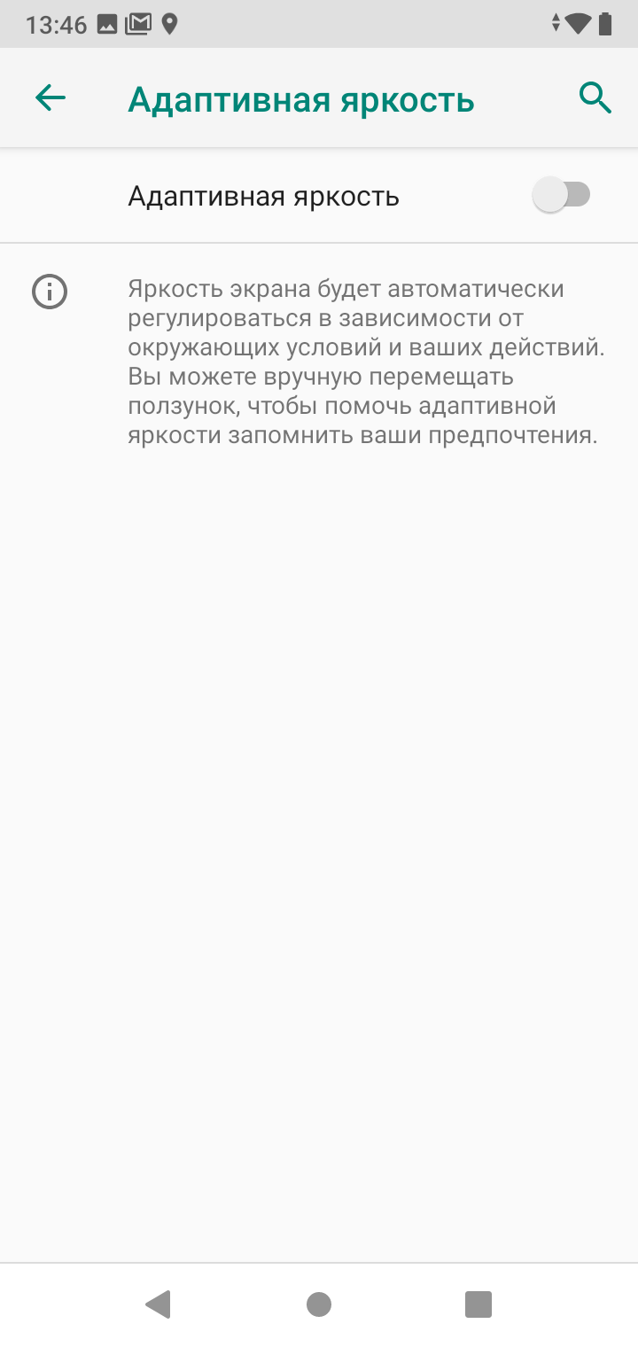 При ручном управлении яркостью и при выводе белого поля во весь экран максимальное значение яркости составило около 480 кд/м², минимальное — 5 кд/м². Максимальная яркость высокая, и, учитывая отличные антибликовые свойства, читаемость экрана даже в солнечный день вне помещения должна быть на приемлемом уровне. В полной темноте яркость можно понизить до комфортного значения. В наличии автоматическая регулировка яркости по датчику освещенности (он находится немного правее и выше фронтальной камеры). В автоматическом режиме при изменении внешних условий освещенности яркость экрана как повышается, так и понижается. Работа этой функции зависит от положения ползунка регулировки яркости: им пользователь может попытаться выставить желаемый уровень яркости в текущих условиях. Если не вмешиваться, то в полной темноте функция автояркости уменьшает яркость до 16 кд/м² (нормально), в условиях освещенного искусственным светом офиса (примерно 550 лк) устанавливает на 215 кд/м² (подходит), в очень ярком окружении (соответствует освещению ясным днем вне помещения, но без прямого солнечного света — 20000 лк или немного больше) повышает до 480 кд/м² (до максимума, что и нужно). Уровень яркости подсветки зависит от положения ползунка в темноте и в средних условиях, а в очень ярком окружении всегда устанавливается максимум. Результат по умолчанию нас удовлетворил, но для эксперимента мы попробовали понизить яркость в полной темноте — подвинули ползунок чуть влево. В итоге для трех условий, указанных выше, получили 5, 210 и 480 кд/м². То, что и требовалось. Получается, что функция автоподстройки яркости работает адекватно и позволяет пользователю настраивать свою работу под индивидуальные требования. На любом уровне яркости значимая модуляция подсветки отсутствует, поэтому нет и никакого мерцания экрана.