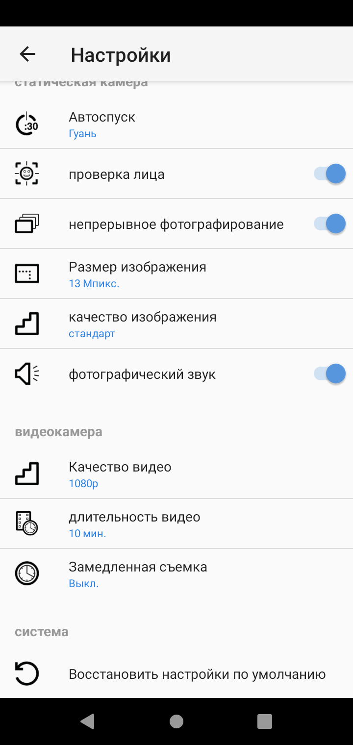 В модели очень странный интерфейс управления камерой, совершенно не похожий на нормальный, тот, что в Lenovo K10 Note, например. Это явно не для европейской аудитории созданный и плохо переведенный китайский интерфейс, пышущий максимальными подробностями по настойке всего, что нужно и не нужно. В нем можно потеряться.