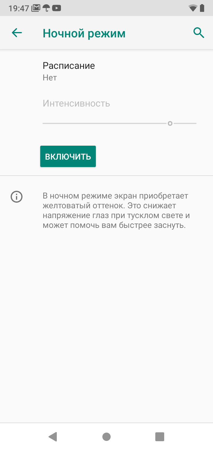 В принципе, яркий свет может приводить к нарушению суточного (циркадного) ритма (см. статью про iPad Pro с дисплеем 9,7 дюйма), но все решается подстройкой яркости до комфортного уровня, а искажать цветовой баланс, уменьшая вклад синего, нет абсолютно никакого смысла. К сожалению, этот Ночной режим нельзя использовать для коррекции цветовой температуры, так как даже на минимальном уровне снижения интенсивности синего цветовая температура равна 5300 К. В итоге данная функция совсем бесполезная.