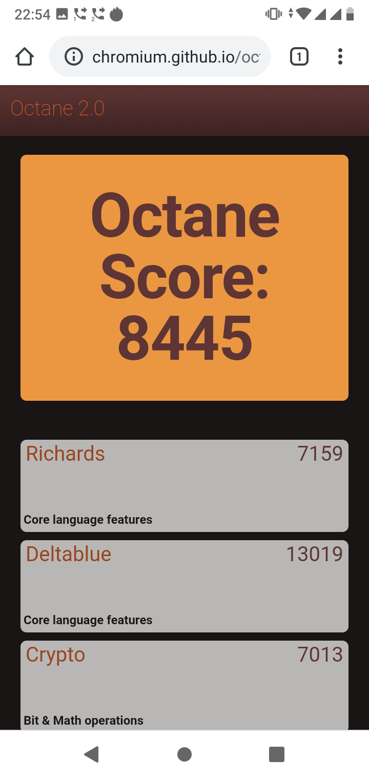 | Google Octane 2 (больше — лучше) | 8445 | 12222 | 10381 | 8831 | 7175 |