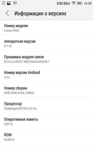 Основные характеристики Lenovo Vibe Z2 Pro (модель K920)