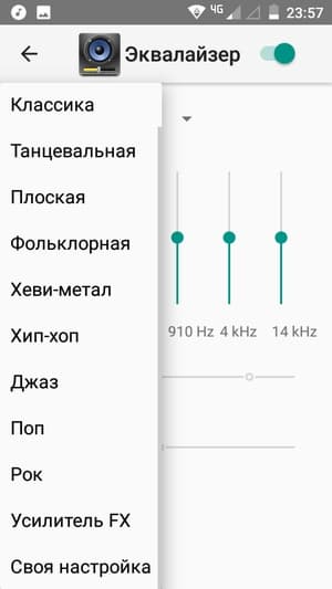 Для прослушивания музыки используется штатный плеер Google Music со звуковыми настройками и пресетами встроенного эквалайзера. И в наушниках, и через динамик звук простенький, не очень чистый, без заметного присутствия низких частот, но достаточно громкий, чтобы не пропустить входящий звонок. Также имеется FM-радио, а вот встроенного диктофона в аппарате не нашлось.