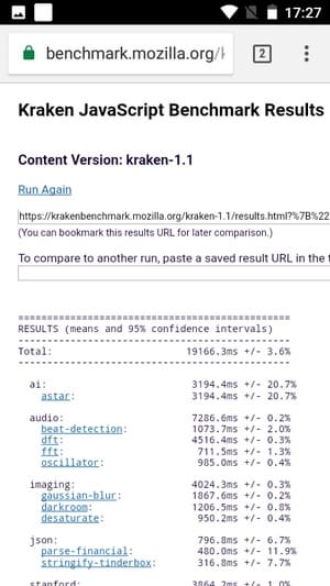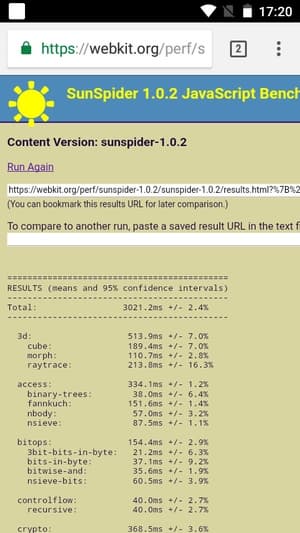 Что касается бенчмарков для оценки скорости движка javascript, то стоит всегда делать скидку на то, что в них результаты существенно зависят от браузера, в котором запускаются, так что сравнение может быть истинно корректным только на одинаковых ОС и браузерах, а такая возможность имеется при тестировании не всегда. В случае с ОС Android мы всегда стараемся использовать Google Chrome.