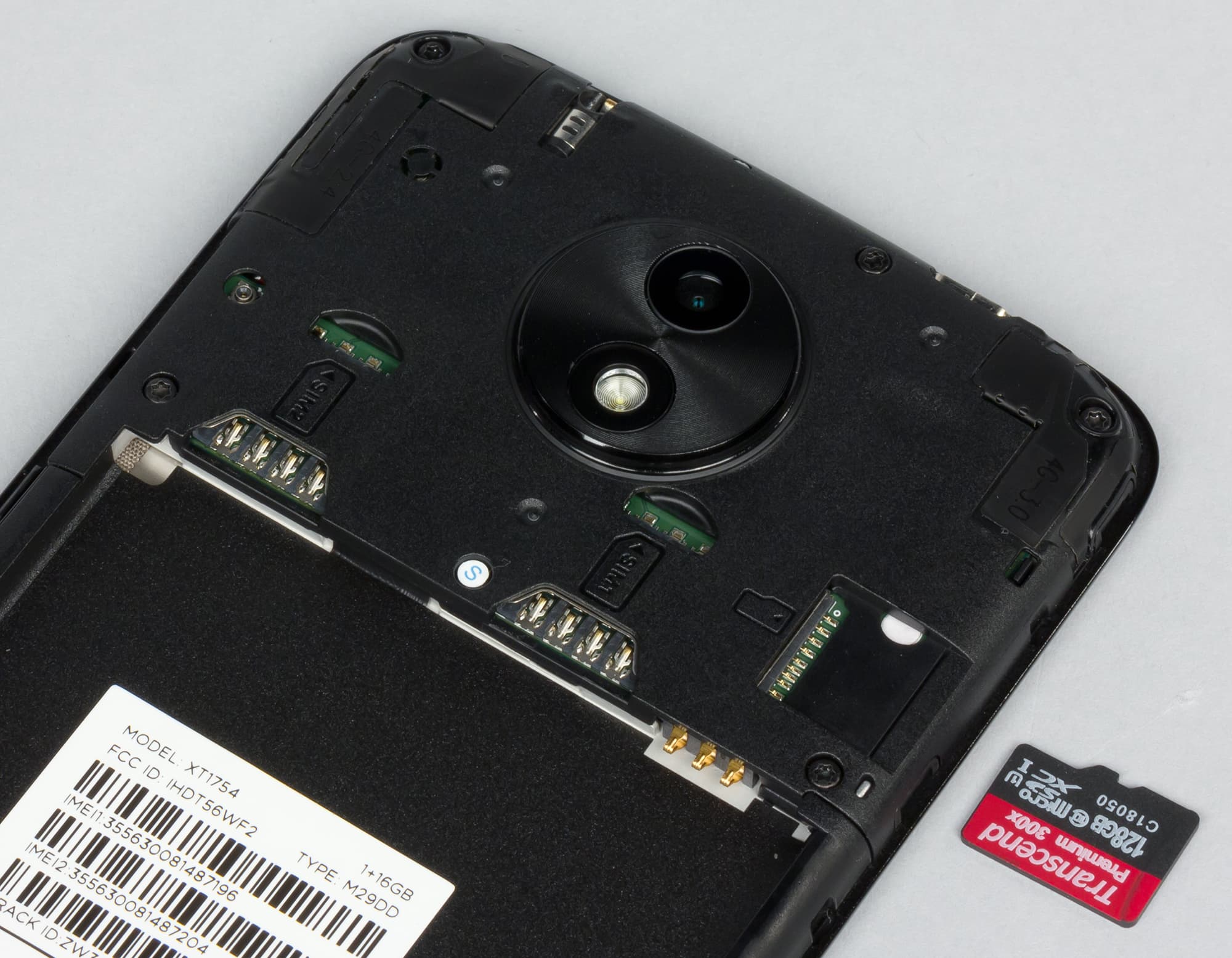 SIM-карты вставляются в разъемы, расположенные под съемной крышкой. Там предусмотрены два слота для Micro-SIM и один для карты памяти microSD. Аккумуляторная батарея сменная, легко извлекается, после установки накрывает собой SIM-карты. Слоты для карточек реализованы продуманно, есть возможность извлечь застрявшие карточки.