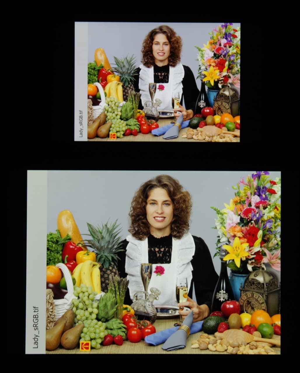 Отметим хорошую равномерность яркости и цветового тона белого поля. И тестовая картинка: