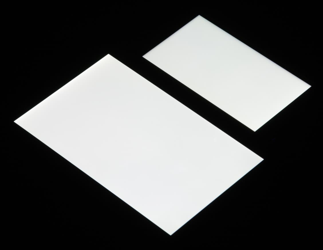 Яркость под углом у экранов уменьшилась (как минимум в 5 раз, исходя из разницы в выдержке), но в случае Moto G5 падение яркости чуть больше. Черное поле при отклонении по диагонали высветляется сильно и приобретает зеленоватый оттенок. Фотографии ниже это демонстрируют (яркость белых участков в перпендикулярном плоскости экранов направлении одинаковая!):