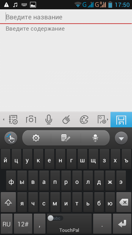 В качестве замены штатной клавиатуры в Lenovo IdeaPhone S720 установлена популярная программа TouchPal. Среди ее основных возможностей: предсказание ввода, распознавание слова на основе движения пальца по буквам, различные экранные раскладки виртуальных клавиш.