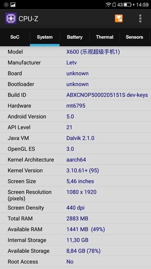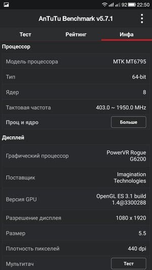 Тот вариант SoC MediaTek MT6795, что установлен в модели LeTV One — это не самая мощная из модификаций данной платформы, компания Meizu уже выпустила смартфон MX5 на разогнанной модификации Helio X10 Turbo, где максимальная частота процессорных ядер поднята до 2,2 ГГц. Тем не менее, нужно заметить, что в сравнении с ним результаты обычной модификации платформы Helio X10 с ядрами частотой 2,0 ГГц, установленной в LeTV One, оказались во всех тестах такими же или даже чуть лучше, чем у Meizu MX5.