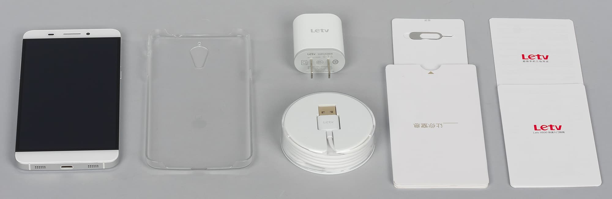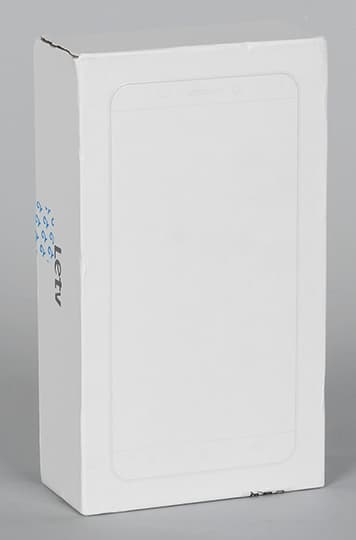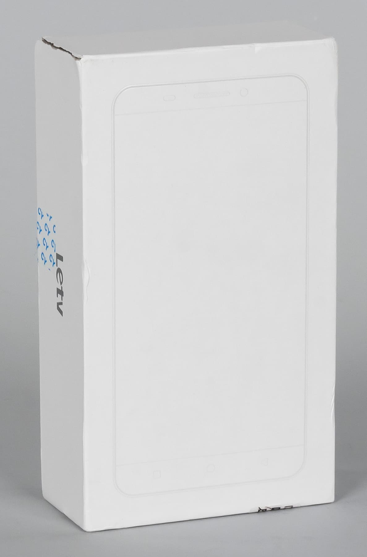 LeTV One поставляется в продажу в достаточно крупной прямоугольной коробке, выполненной из твердого белоснежного картона с минимальным количеством надписей. Упаковка выполнена аккуратно, оформлена достаточно стильно, внешне сильно напоминает таковую у iPhone 6 Plus, с которой, собственно, и копировалась.