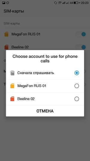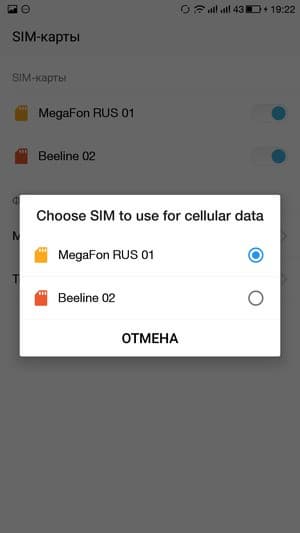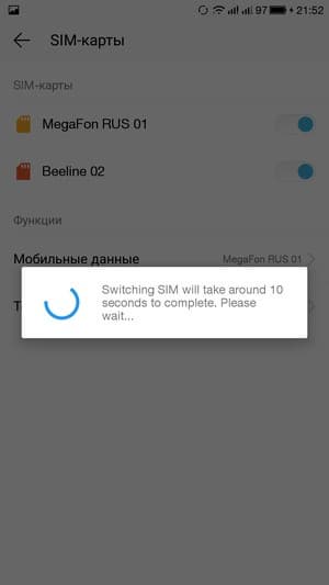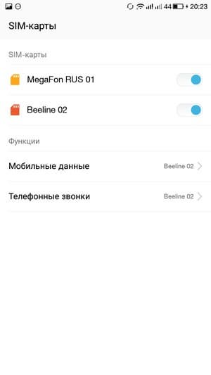 Смартфон поддерживает работу с двумя SIM-картами, и в целом работа с ними в меню организована по знакомому принципу: можно любую из SIM-карт назначить основной для организации голосовых звонков, передачи данных или отправки SMS-сообщений; при наборе номера также можно выбрать желаемую карту в контекстном подменю. С сетями 3G/4G может работать SIM-карта в любом слоте, однако одновременно в этом режиме может функционировать лишь одна из карт. Для смены назначений слотов карточки менять местами не требуется — это можно сделать прямо из меню телефона. Работа с двумя SIM-картами организована по привычному стандарту Dual SIM Dual Standby, когда обе карты могут находиться в активном режиме ожидания, но одновременно работать не могут — радиомодуль здесь только один.