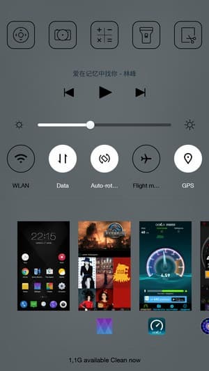 Основу основ в управлении системой здесь играет широкое по своим возможностям меню быстрого доступа к наиболее востребованным функциям, вызываемое по нажатию на крайнюю кнопку слева под экраном. В этом меню собраны и последние установленные программы с возможностью мгновенной очистки памяти, и быстрые настройки функций смартфона, и доступ к полезным программам утилитарного назначения, таким как включение фонарика, вызов калькулятора или сохранение скриншота. Здесь же можно быстро подстроить яркость дисплея и даже управлять проигрыванием музыкального плеера. Но самое главное, что попасть в это меню можно одним простым нажатием кнопки, нет необходимости прибегать к каким-либо жестам или дополнительным действиям. После, например, печально известного смарт-бара в аппаратах Meizu, такой удобный способ видится настоящей отдушиной. Все-таки управление жестами должно дублировать, но никак не заменять основной способ взаимодействия с кнопками, пусть и виртуальными.