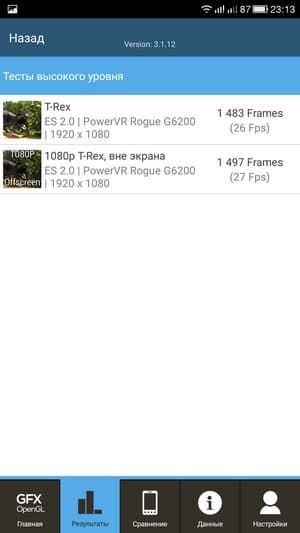| GFXBenchmark T-Rex HD (C24Z16 Onscreen) | 26 fps | 27 fps | 37 fps | 46 fps | 23 fps |