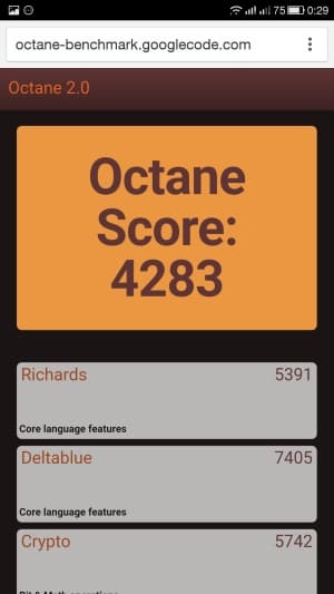 | Google Octane 2 (больше — лучше) | 4283 | 3760 | 3262 | 6846 | 4854 |