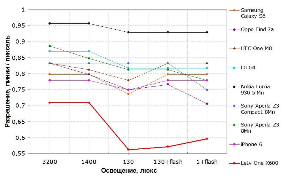 Они нетипичные, но их мы уже видели в случае, например, Sony Xperia Z2. Sony указывает, что в этих экранах используются светодиоды с синим излучателем и зеленым и красным люминофором (обычно — синий излучатель и желтый люминофор), что в сочетании со специальными светофильтрами матрицы и позволяет получить широкий цветовой охват. Скорее всего, данное утверждение верно и в случае LeTV One. В данном случае широкий цветовой охват является никак не достоинством, а существенным недостатком, так как в итоге цвета изображений — рисунков, фотографий и фильмов, — ориентированных на пространство sRGB (а таких подавляющее большинство), имеют неестественную насыщенность. Особенно это заметно на узнаваемых оттенках, например на оттенках кожи. Результат приведен на фотографии выше.