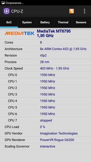 - SoC MediaTek MT6795 (Helio X10), 2,0 ГГц, 8 ядер, ARM Cortex-A53