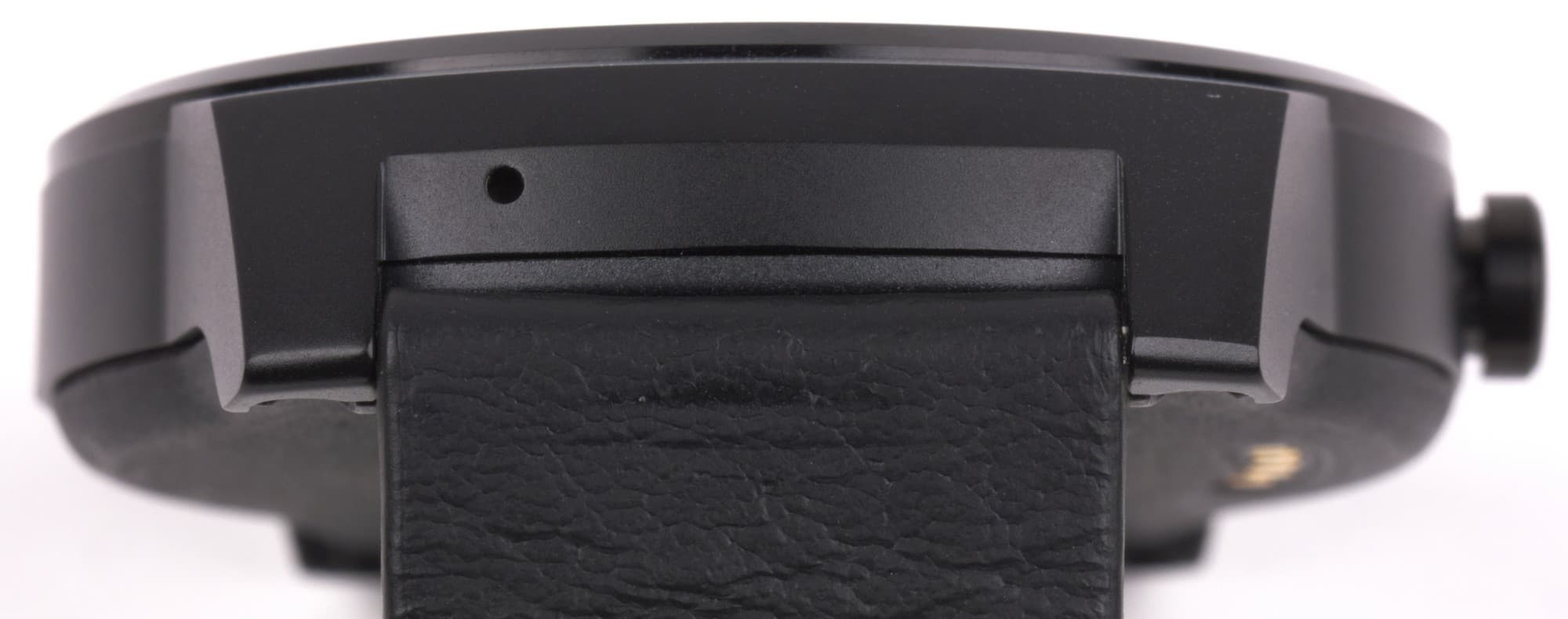 Две части ремешка крепятся к часам привычным способом, на тонкой металлической спице, продетой через петли. Над одной из петель мы видим отверстие: это микрофон.
