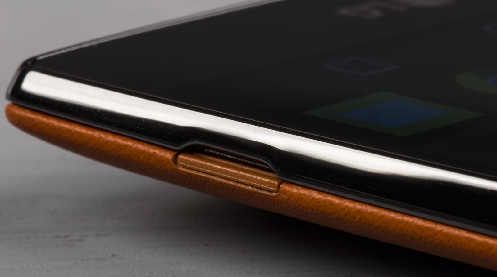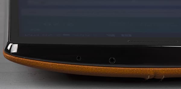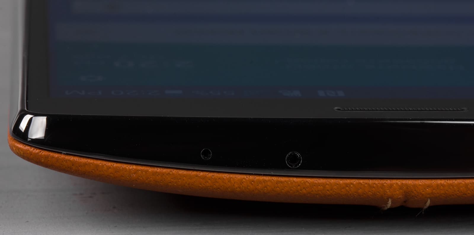 На самом деле, и у LG G4 корпус, как и сам дисплей, имеют небольшой изгиб, но он гораздо менее заметен, чем у LG G Flex 2. И все же, если положить смартфон на твердую поверхность экраном вниз, то явно будет видна небольшая щель шириной примерно в миллиметр. По словам разработчиков, такое решение не только является элементом дизайна, но и обеспечивает на 20% больше надежности по сравнению с плоскими смартфонами в случае падения экраном вниз. Передняя поверхность имеет гораздо менее выделенный изгиб, нежели задняя. Тыльная сторона настолько покатая и закругленная на манер пресс-папье, что из-за нее смартфон раскачивается на столе. Работать с лежащим на твердой поверхности LG G4 решительно неудобно, при любом прикосновении к экрану корпус покачивается.