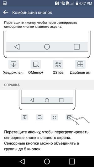 В нижней части под экраном нет сенсорных кнопок, управление осуществляется с помощью виртуальных кнопок на экране. Блок этих кнопок можно скрывать или отображать при использовании приложений, можно осуществить индивидуальную настройку для каждой отдельной программы. Комбинация отображаемых кнопок может быть изменена путем перегруппировки в соответствующем разделе настроек.