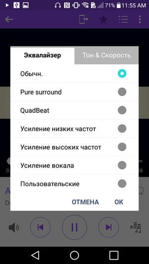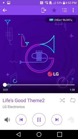 Для проигрывания музыкальных композиций используется фирменный проигрыватель. В настройках штатного аудиоплеера имеется возможность повлиять на качество звука с помощью предустановленных значений эквалайзера и дополнительных регуляторов. FM-радио так и не появилось, по крайней мере в европейской версии аппарата.