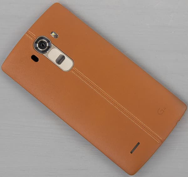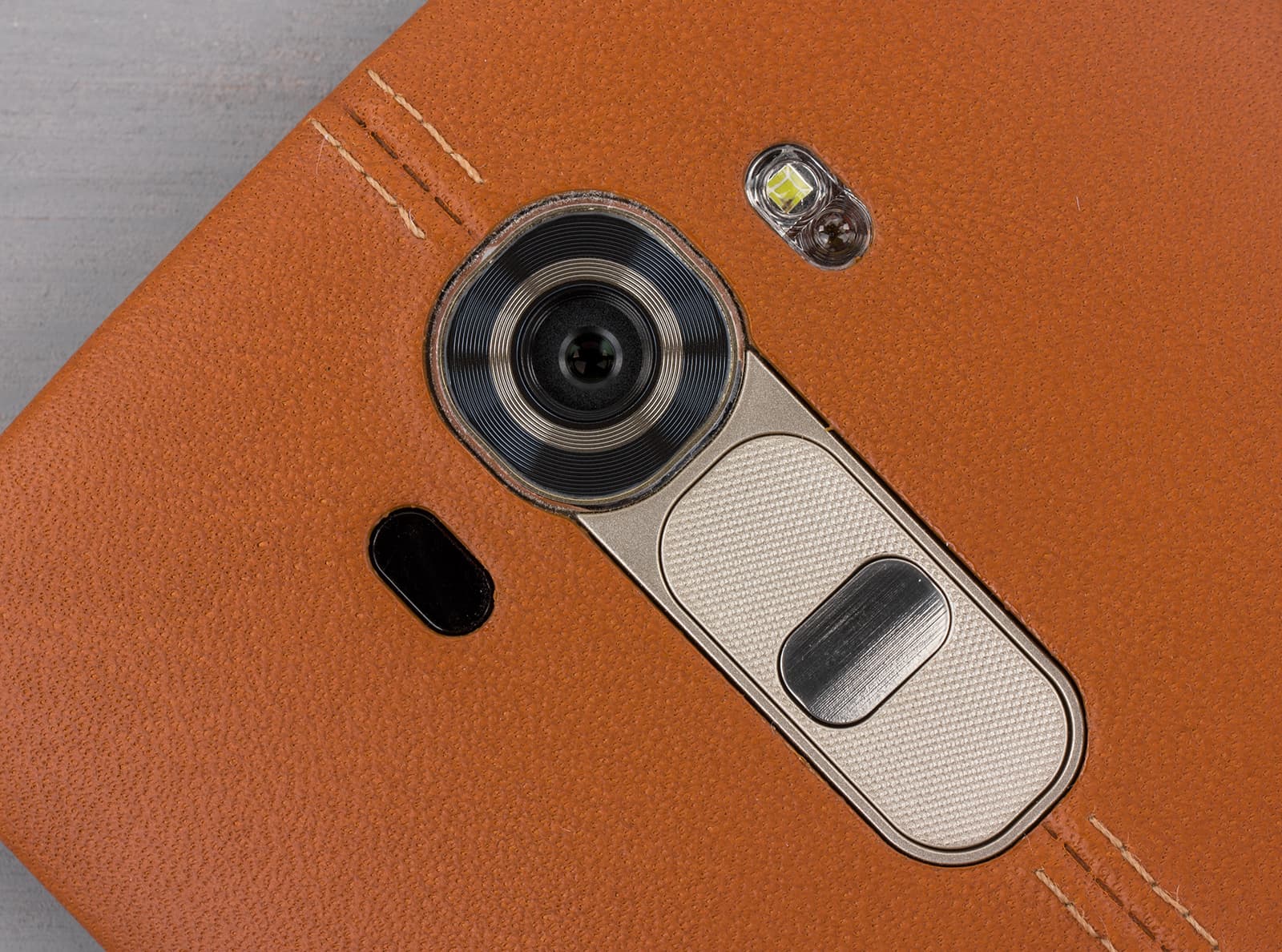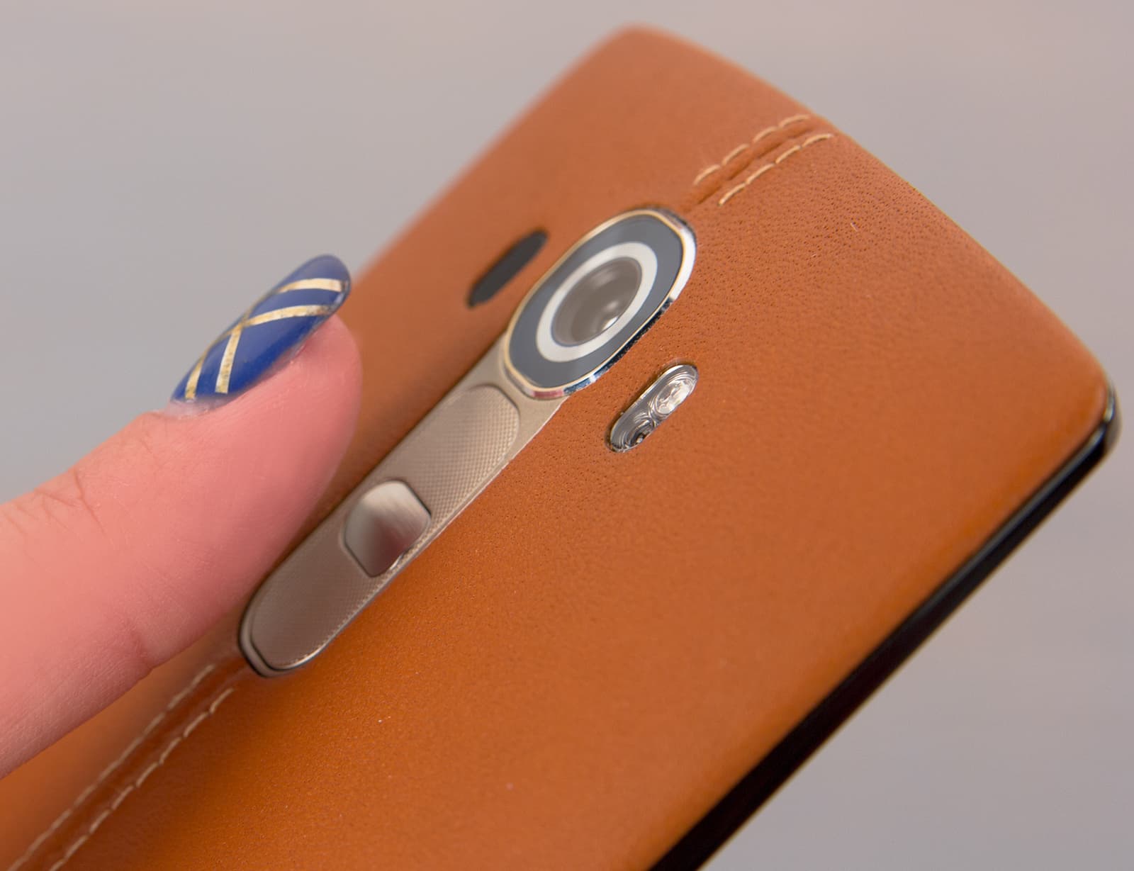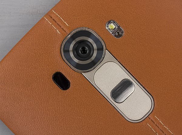 На тыльной стороне смартфона располагается крупное окошко камеры, обрамленное тонким колечком. По бокам от него находятся светодиодная вспышка и лазерный дальномер для измерения расстояния до объекта фотосъемки. Модуль камеры совмещен с кнопками управления, расположенными здесь же, на тыльной стороне. Надо заметить, что в отличие от последних изделий Apple и Samsung, у LG G4 модуль камеры совсем не выпирает за пределы поверхности, однако тут нельзя забывать про избыточную толщину корпуса модели LG. Светодиодная вспышка может функционировать в качестве фонарика, для этого в смартфоне имеется соответствующее приложение.