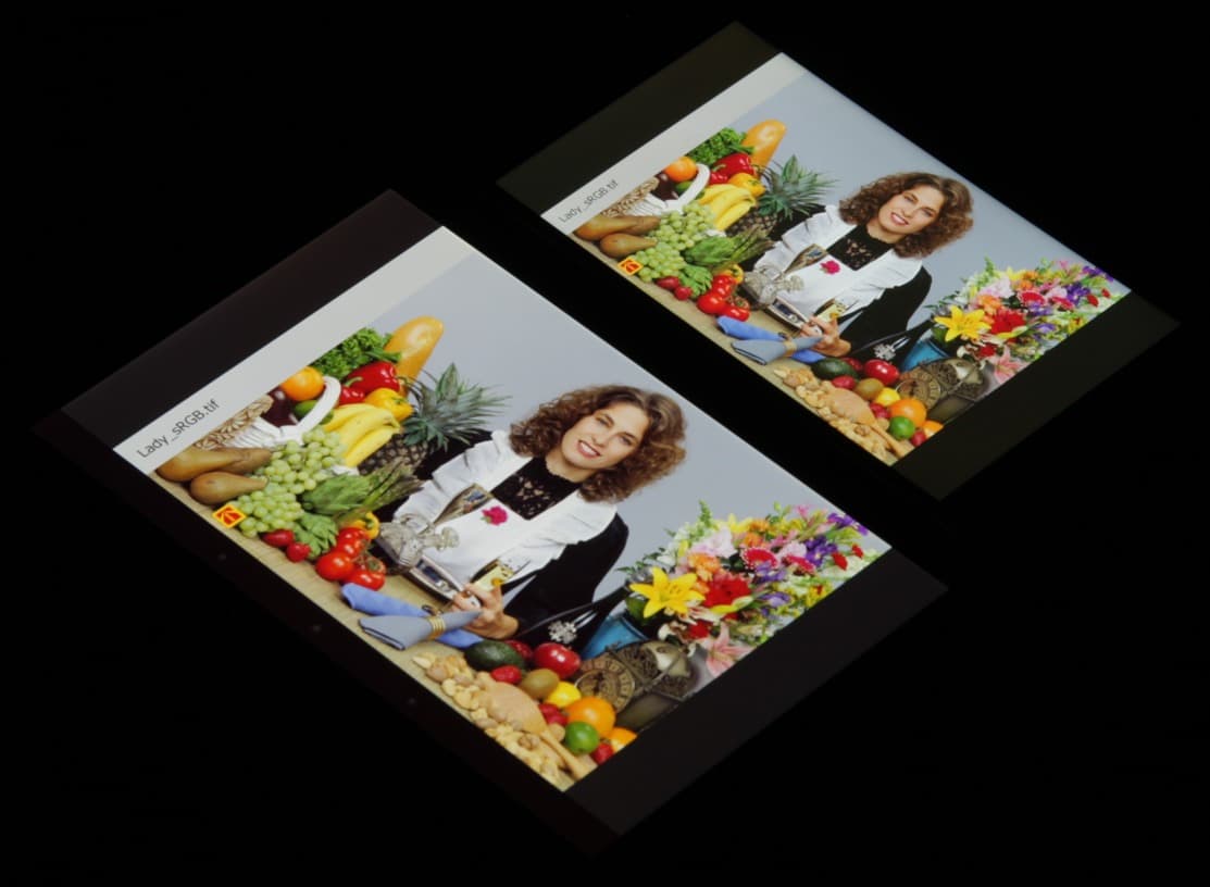Они нетипичные, но их мы уже видели в случае Sony Xperia Z2 и других устройств. Производитель указывает, что в этом экране для расширения цветового охвата используется технология квантовых точек, преподнося данный факт как неоспоримое достоинство. Это является маркетинговой уловкой, рассчитанной на обывателя, который считает, что то, что больше, всегда лучше. На самом деле — не лучше, так как в итоге цвета изображений (рисунков, фотографий и фильмов), ориентированных на пространство sRGB (а таких подавляющее большинство), имеют неестественную насыщенность. Особенно это заметно на узнаваемых оттенках, например на оттенках кожи. Результат приведен на фотографии выше.
