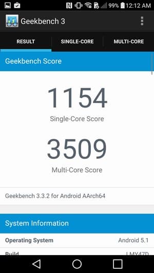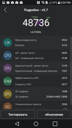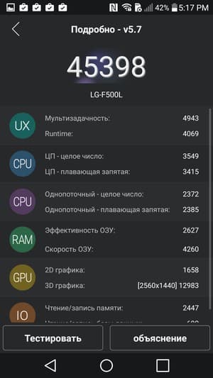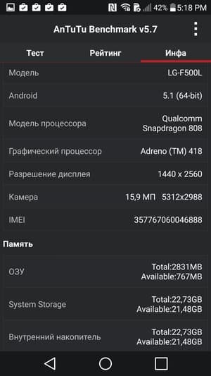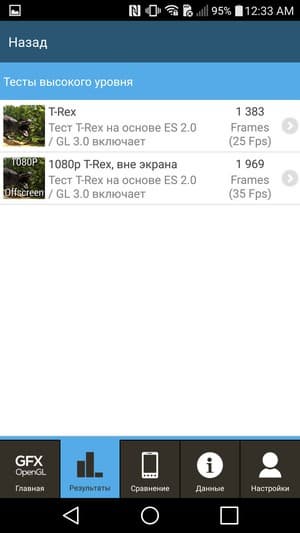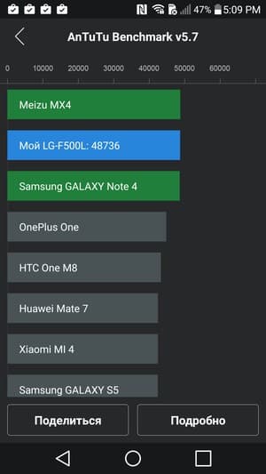 LG G4 — это первый смартфон на новой платформе Qualcomm Snapdragon 808. Повторим, что они с Snapdragon 810 являются наиболее производительными однокристальными системами в ассортименте Qualcomm. Ранее мы уже успели познакомиться с возможностями Snapdragon 810 на примере LG G Flex 2 и HTC One M9, и нужно заметить, что в сравнении с ними результы Snapdragon 808 оказались практически такими же. В 64-битной версии AnTuTu показатели достигли 48К, но в стандартном тесте результирующая цифра дотянула лишь до 45К очков. По результатам тестирования обладатели новейших платформ Qualcomm не показали себя безусловными лидерами — новейшие SoC семейства Samsung Exynos (7420), установленные в смартфонах новой серии Samsung Galaxy S6, оказались явно производительнее. Как бы то ни было, аппаратная начинка смартфона LG G4 в любом случае достаточно мощная для того, чтобы справиться с любыми задачами, поставленными требовательными программами и тяжелыми 3D-играми. С другой стороны, то, что даже самые мощные решения из семейства Qualcomm Snapdragon уступают в новом сезоне топовым платформам MediaTek и Samsung Exynos, является тревожным фактом.