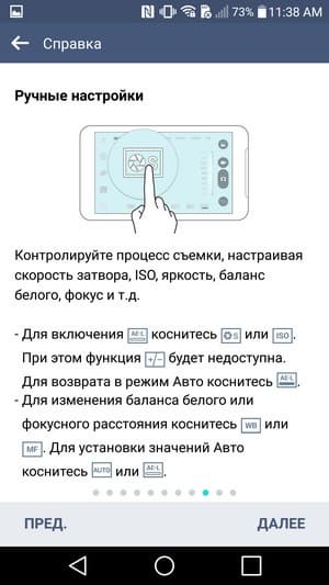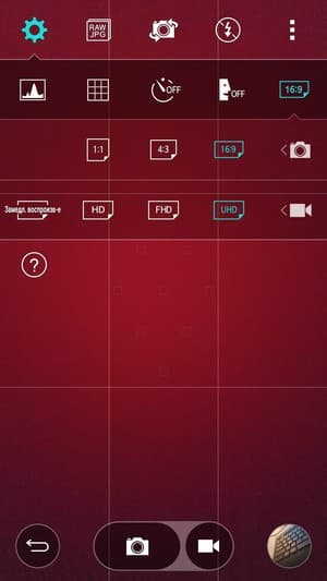 Меню настроек выглядит точно так же, как и в предыдущих моделях. Оно очень простое и лаконичное: имеется всего две полоски с пиктограммами, которые прорисованы мелковато и не очень хорошо различимы на ярком солнце. Новой функцией для камеры LG G4 является ручной режим, дающий опытным фотографам больше возможностей самовыражения и позволяющий самостоятельно контролировать фокус, скорость затвора, ISO, экспокоррекцию и баланс белого от кадра к кадру. Вдобавок к JPEG, теперь можно сохранять свои фото в формате RAW.