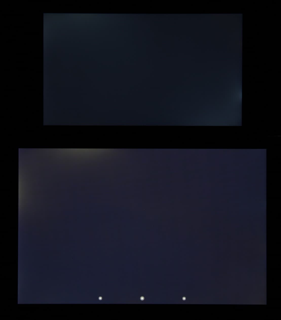 При перпендикулярном взгляде равномерность черного поля неидеальная, так как яркость черного местами заметно повышается: