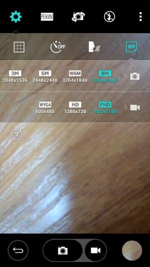 Обычно в настройках интерфейса камеры смартфонов всегда найдется возможность задействовать иные режимы съемки, кроме обычного: панорама, серийная, спорт, HDR. Здесь все гораздо проще: помимо стандартного автоматического режима можно переключиться только в режим панорамной съемки, других режимов не предусмотрено. В целом возможности настройки обеих камер LG L Bello более чем скромные, настроек мало, но все они наглядно и удобно распределены в интуитивно понятном меню управления камерой.