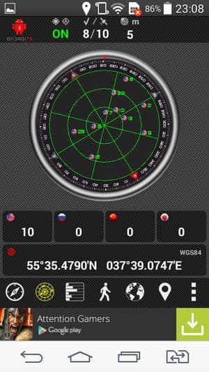 Остальные коммуникационные возможности аппарата тоже реализованы скромно: здесь не поддерживаются также ни диапазон Wi-Fi 5 ГГц, ни технология NFC, ни подключение внешних устройств к порту USB (USB Host, OTG). Можно стандартно организовать беспроводную точку доступа через каналы Wi-Fi или Bluetooth. Навигационный модуль, судя по официальным характеристикам, вроде бы должен уметь работать как с GPS, так и с отечественной системой Глонасс, однако на нашем обычном проверочном месте тестовый экземпляр не увидел никаких других спутников, кроме GPS.