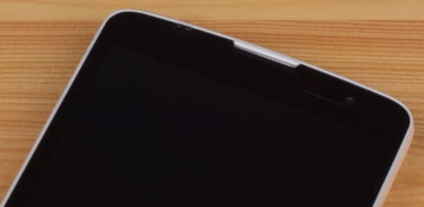 Вся передняя панель полностью прикрыта защитным материалом, похожим на стекло. Глазок фронтальной камеры и прорезь для решетки разговорного динамика расположены в верхней части над экраном. К сожалению, производитель не предусмотрел ни в одной из своих новых бюджетных моделей L-серии такого полезного элемента, как светодиодный датчик оповещения, его здесь просто нет.