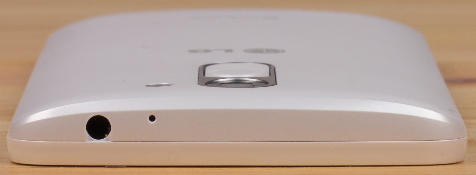 Разъем Micro-USB 2.0 традиционно разместили в нижнем торце устройства, рядом с отверстием основного микрофона; второй, вспомогательный микрофон врезан в верхний торец поблизости от аудиоразъема 3,5 мм для выхода на наушники. Micro-USB здесь не поддерживает подключение флэш-накопителей в режиме OTG (USB Host). Никакими заглушками выходы и разъемы аппарата не оборудованы, поскольку смартфон не обеспечен защитой от воды и пыли. Не найти на корпусе LG L Bello и крепления для ремешка.