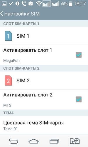 Смартфон обеспечивает работу с двумя SIM-картами по стандарту Dual SIM Dual Standby. Не считая специальной кнопки для быстрой смены приоритетной SIM-карты, реализация работы с двумя SIM-картами в целом стандартна для данной платформы. Радиомодуль здесь один, поэтому активный разговор может быть только один, вторая карточка становится в этот момент недоступна. В настройках можно выбрать для каждой из карт цветовую тему, оформление значков, расставить приоритеты и т. д. В момент набора номера не предоставляется выбор между двумя SIM-картами — для этого нужно использовать отдельную клавишу быстрого переключения приоритетной карты. С сетями 3G может работать SIM-карта в любом слоте, однако одновременно в этом режиме может работать лишь одна из карт (вторая будет работать только в 2G).