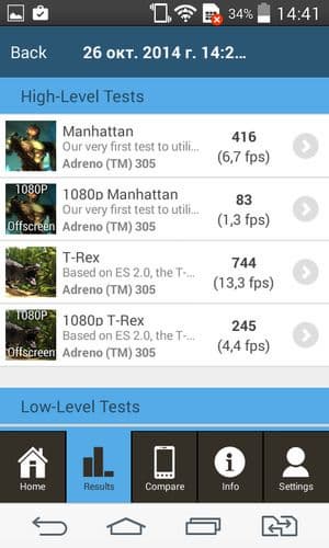 По результатам тестирования в бенчмарках смартфон LG L Fino ожидаемо можно отнести к разряду аппаратов со средним (или даже чуть ниже среднего) уровнем производительности, типичным для данной платформы. В целом, на текущий момент аппаратной производительности смартфона должно хватать для выполнения большинства основных задач, которые могут поставить приложения из Google Play Store, не считая самых требовательных игр, так как видеоподсистема испытуемого демонстрирует достаточно скромные результаты в специализированных графических тестах.