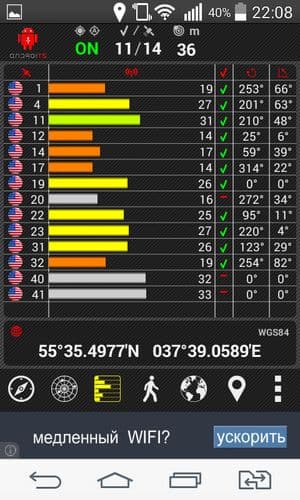 Остальные коммуникационные возможности аппарата тоже реализованы, что называется, без излишеств: здесь не поддерживаются ни диапазон Wi-Fi 5 ГГц, ни технология NFC, ни подключение внешних устройств к порту USB (USB Host, OTG). Можно стандартно организовать беспроводную точку доступа через каналы Wi-Fi или Bluetooth. Навигационный модуль, судя по официальным характеристикам, вроде бы должен уметь работать как с GPS, так и с отечественной системой Глонасс, однако на нашем обычном проверочном месте тестовый экземпляр не увидел никаких других спутников, кроме GPS.
