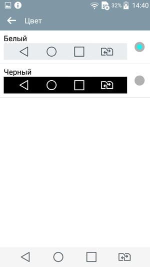 Сенсорных кнопок внизу под экраном нет, они переместились на экран. Блок с виртуальными кнопками можно настроить по своему усмотрению, то есть можно переставить кнопки местами в более удобной для пользователя последовательности, убирать, добавлять, и даже изменить цвет блока с белого на черный.