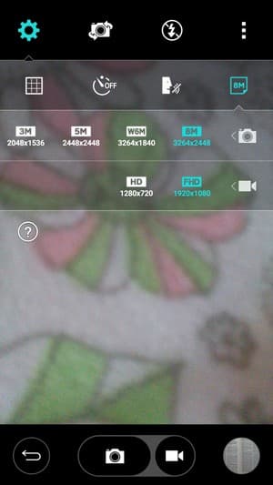 Основная, тыльная камера оснащена 8-мегапиксельным сенсором и объективом с диафрагмой f/2,4 с автофокусом и собственной светодиодной вспышкой. Меню настроек точно такое же, как и в прошлогодних моделях LG, в этом плане ничего не изменилось. Меню крайне лаконичное, настройки объединены в несколько горизонтальных полосок, появляющихся по мере необходимости. Иконки и подписи к ним прорисованы мелко, на ярком солнце они бывают трудноразличимы. Обычно в настройках интерфейса камеры смартфонов находится возможность задействовать разнообразные режимы съемки: панорама, серийная, спорт, HDR. Здесь все гораздо проще: помимо стандартного автоматического режима других режимов не предусмотрено.