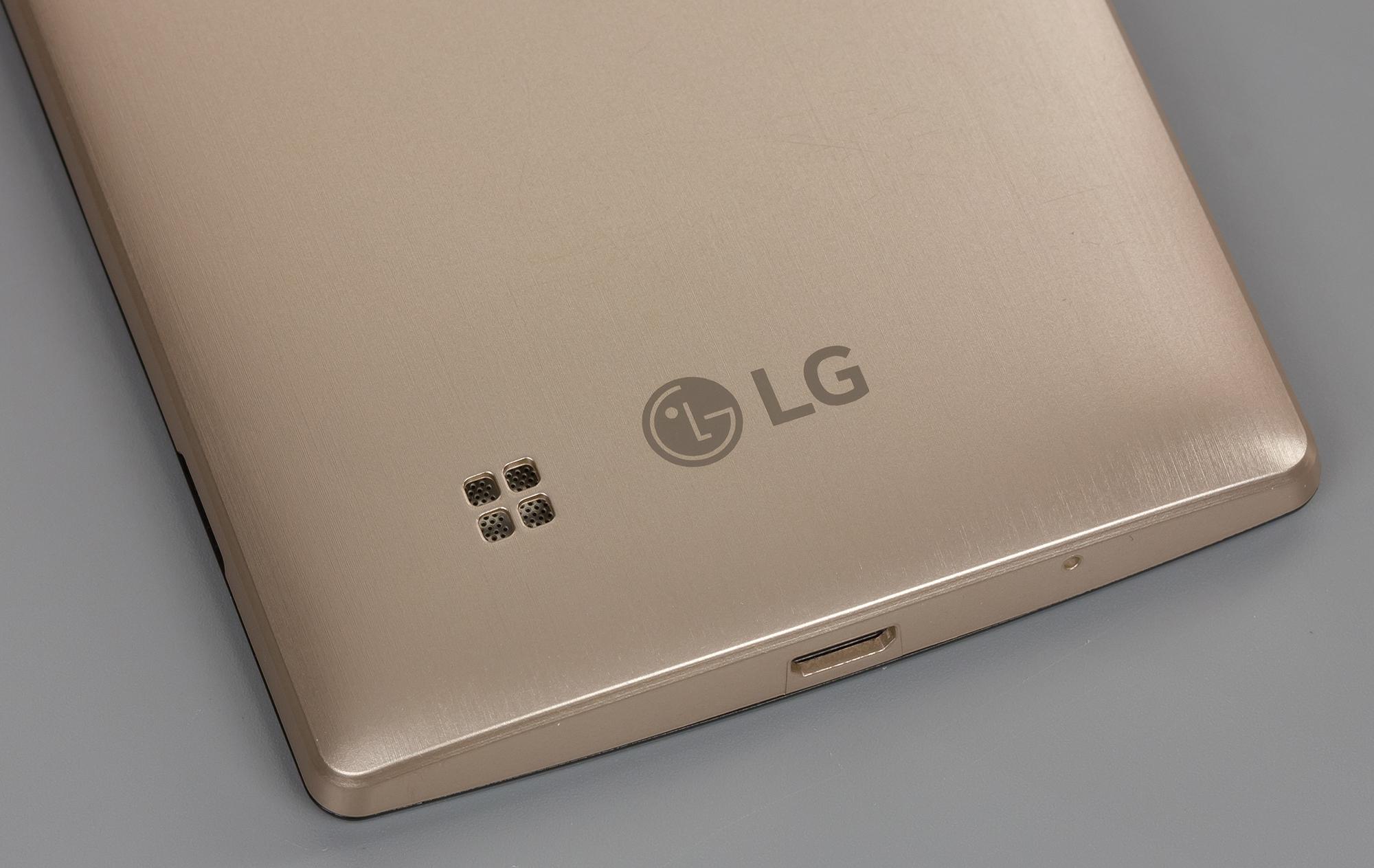 Сам ободок, кстати, имеет не глянцевое и маркое, как у того же LG G4, покрытие, а матовое и не блестящее, однако его поверхность все равно достаточно скользкая для удержания в пальцах. При этом корпус смартфона остается по большей части немарким, отпечатки заметны лишь на стекле дисплея. По размерам LG Magna является типичным представителем современных пятидюймовых смартфонов, не слишком большим, не слишком тяжелым и не слишком толстым.