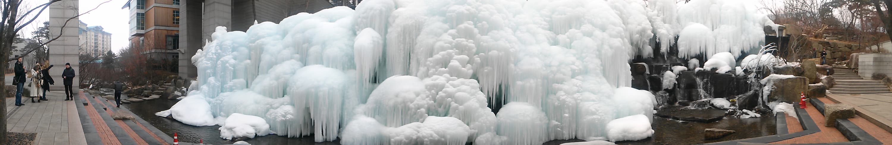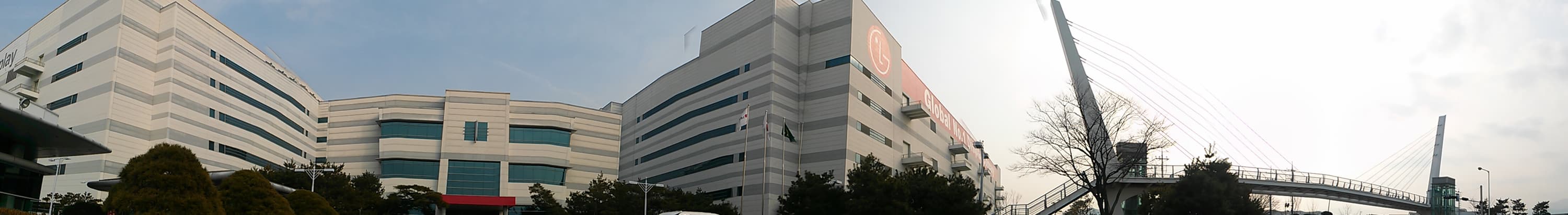 Грех было не испробовать и функцию панорамной съемки при наличии столь впечатляющих пейзажей. На снимке: фабрика LG — это не просто фабрика, это целый фабричный многокилометровый городок с многочисленными постройками различного назначения вплоть до мостов и путепроводов. На втором снимке изображена искусственная ледяная инсталляция в центре собственного горнолыжного курорта LG, воздвигнутого компанией всего в часе езды от Сеула — необыкновенно красивое место в горах.