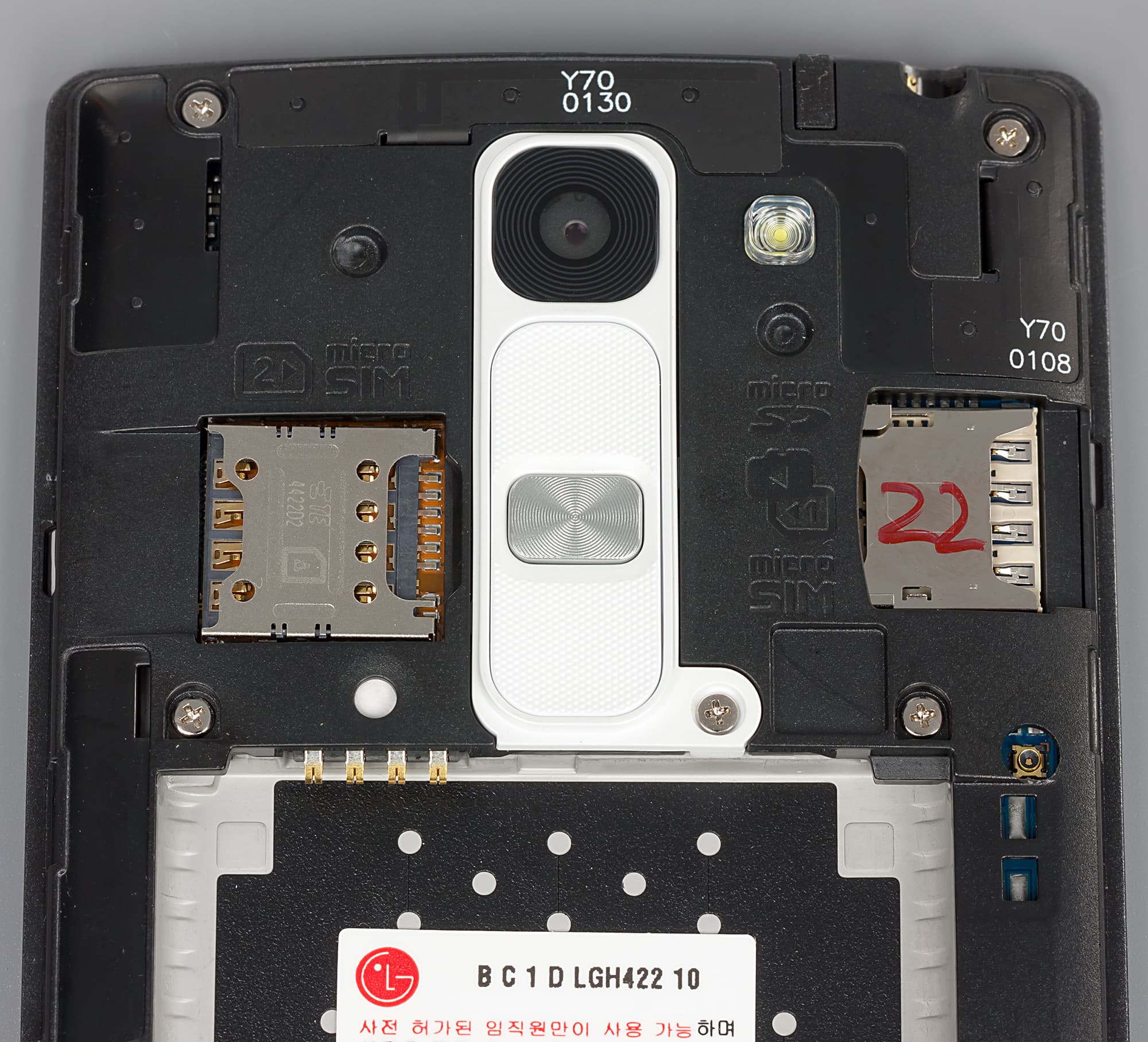 Крышка достаточно легко снимается, имеет толстый профиль и за счет своей формы в виде целикового корытца оказывается совершенно не гибкой. Под крышкой скрываются три разъема для карточек, размещенные столь удачно, что их без труда можно использовать даже с переходниками, что во времена присутствия на рынке сразу трех разных форм-факторов SIM-карт является достаточно актуальным моментом. Большинство разъемов таковы, что в них очень неудобно (и порой даже опасно) вставлять SIM-карты с переходниками, поскольку можно повредить тонкие металлические контакты. Здесь же все обустроено чрезвычайно удобно. Оба разъема, расположенных по обеим сторонам корпуса, рассчитаны на карты формата Micro-SIM, также имеется один дополнительный слот для карты памяти microSD.
