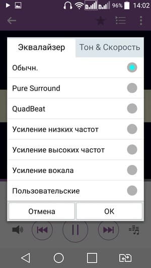 Для управления качеством звучания традиционно для смартфонов LG имеется возможность выбора из нескольких предустановленных значений эквалайзера, также можно поиграться со скоростью и тоном. FM-радио в штатной комплектации смартфона имеется, работает только с подключенными наушниками, умеет записывать передачи с эфира.