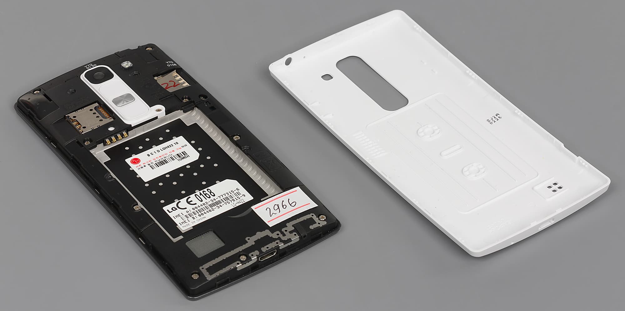 Кстати, помимо белого и серого вариантов, предусмотрен также золотистый окрас корпуса LG Spirit. Серый и золотистый варианты имеют текстурированность под вид грубо ошкуренного металла, а белый — просто светлый пластик с мелкой сеточной текстурированностью, на котором вовсе не остается отпечатков пальцев. В принципе, корпуса отличаются лишь этой съемной задней крышкой, передняя часть всегда остается однотипной.