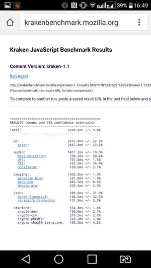 Что касается бенчмарков для оценки скорости движка javascript, то стоит всегда делать скидку на то, что в них результаты существенно зависят от браузера, в котором запускаются, так что сравнение может быть истинно корректным только на одинаковых ОС и браузерах, а такая возможность имеется при тестировании не всегда. В случае с ОС Android мы всегда стараемся использовать Google Chrome.