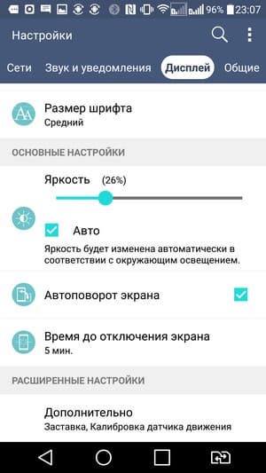 В настройках дисплея можно задействовать автоматическую регулировку яркости в зависимости от окружающего освещения. Технология мультитач здесь позволяет обрабатывать 10 одновременных прикосновений. При поднесении смартфона к уху экран блокируется с помощью датчика приближения. Двойным постукиванием по стеклу экран можно пробудить, а также усыпить обратно.