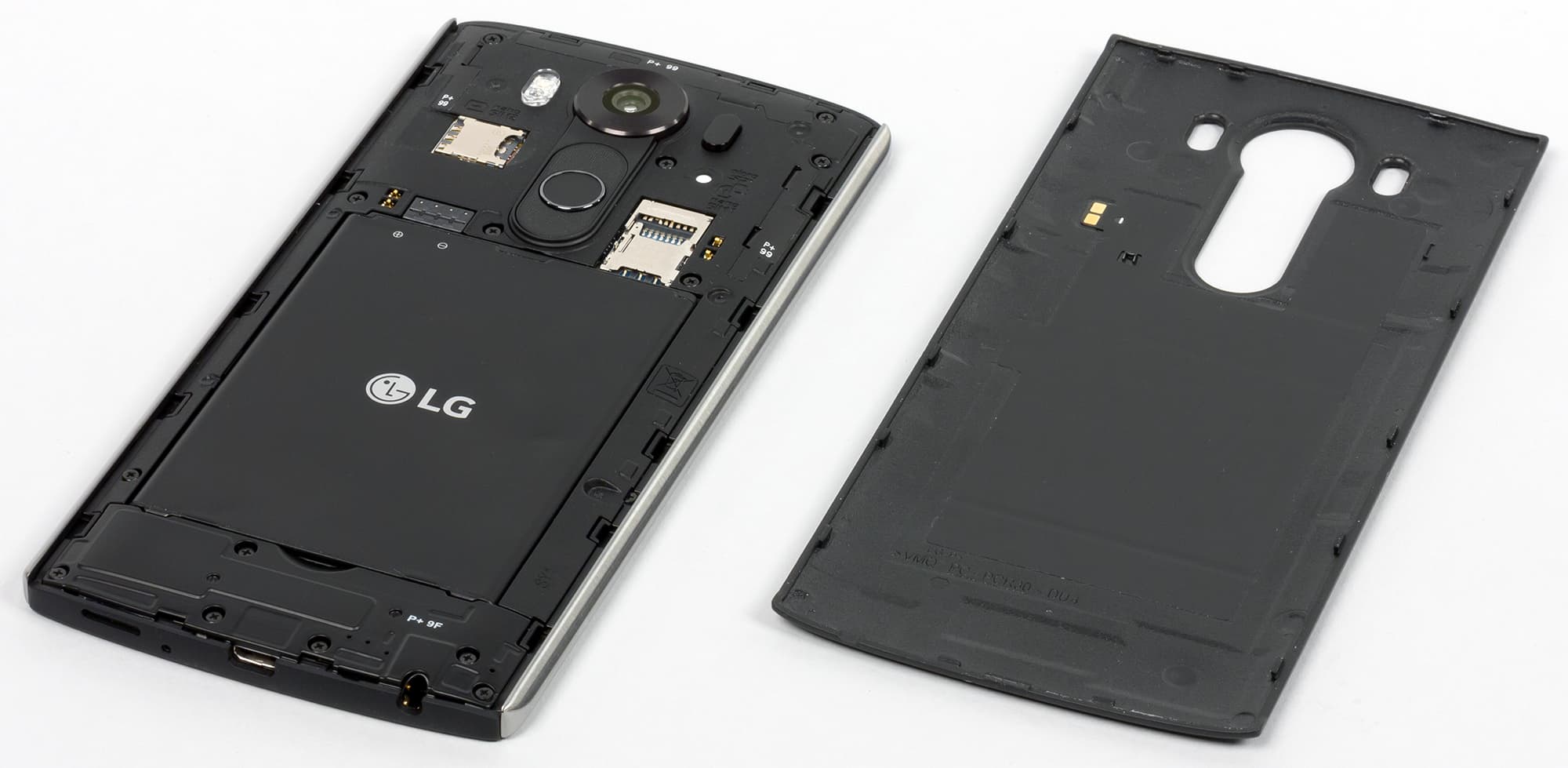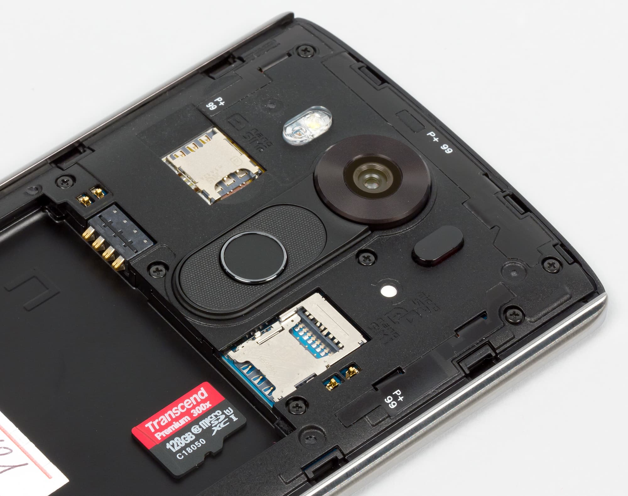 Крышка достаточно легко снимается, под ней скрываются одиночный и сдвоенный слоты для SIM-карт и карты памяти. В один из разъемов вставляется карточка Nano-SIM, второй может принять еще одну карту Nano-SIM и карту памяти microSD — при этом не придется жертвовать второй SIM-картой, за что LG можно только похвалить.