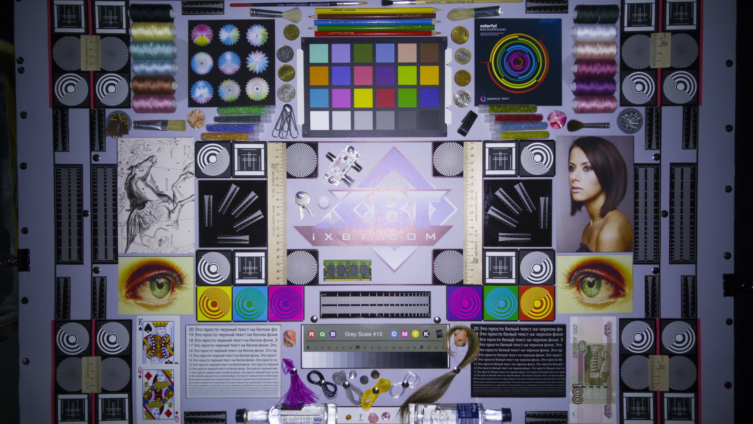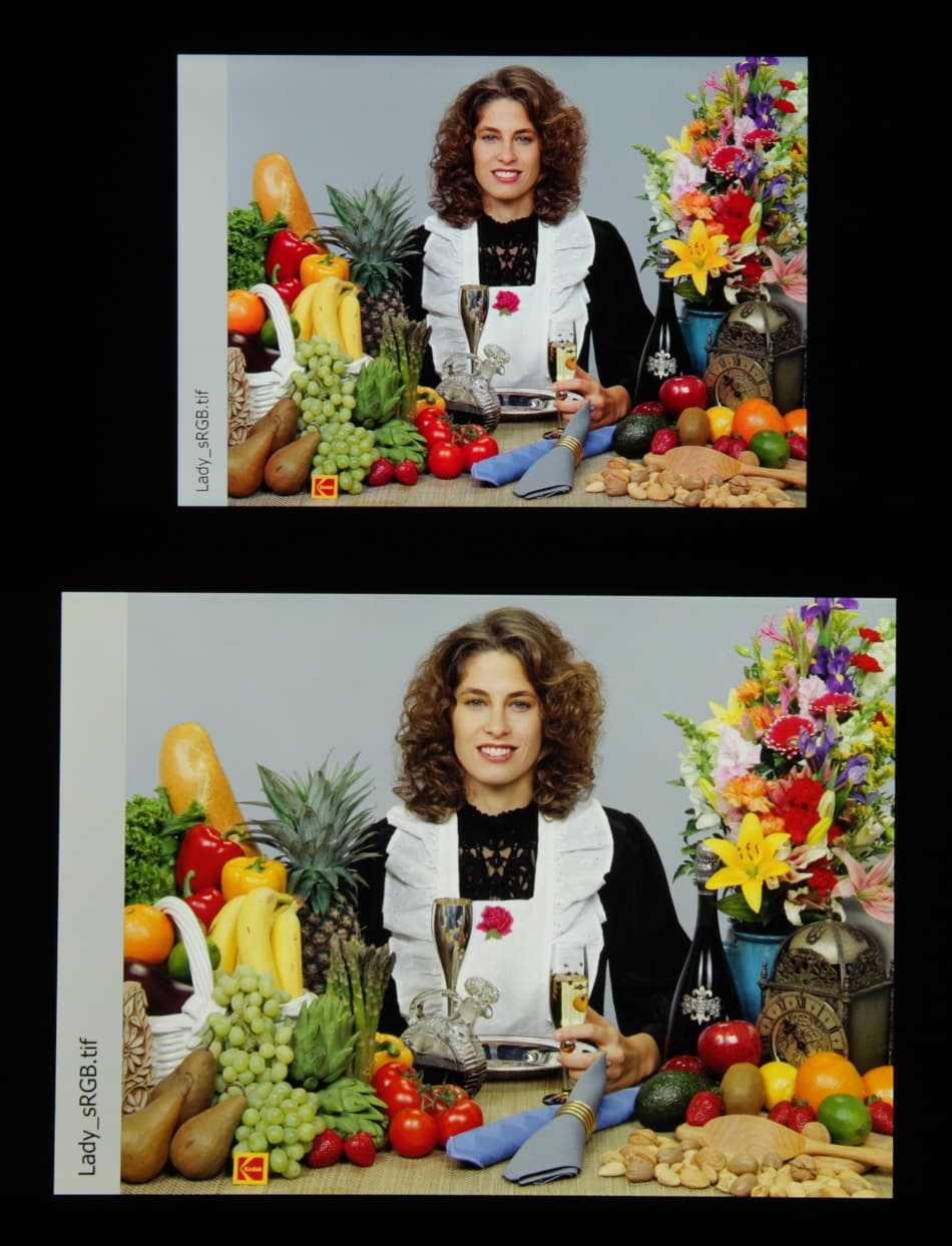 Отметим хорошую равномерность яркости и цветового тона белого поля. И тестовая картинка: