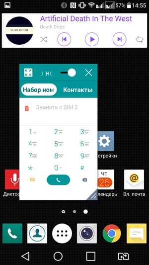 Телефонное приложение поддерживает Smart Dial, то есть во время набора телефонного номера сразу осуществляется и поиск по первым буквам в контактах, имеется и поддержка непрерывного ввода типа Swype. Есть возможность уменьшения в размерах рабочей площади экрана для удобства управления пальцами одной руки, правда, тогда все элементы становятся достаточно мелкими.