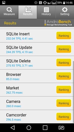 Результаты теста AndroBench на скорость работы с памятью: