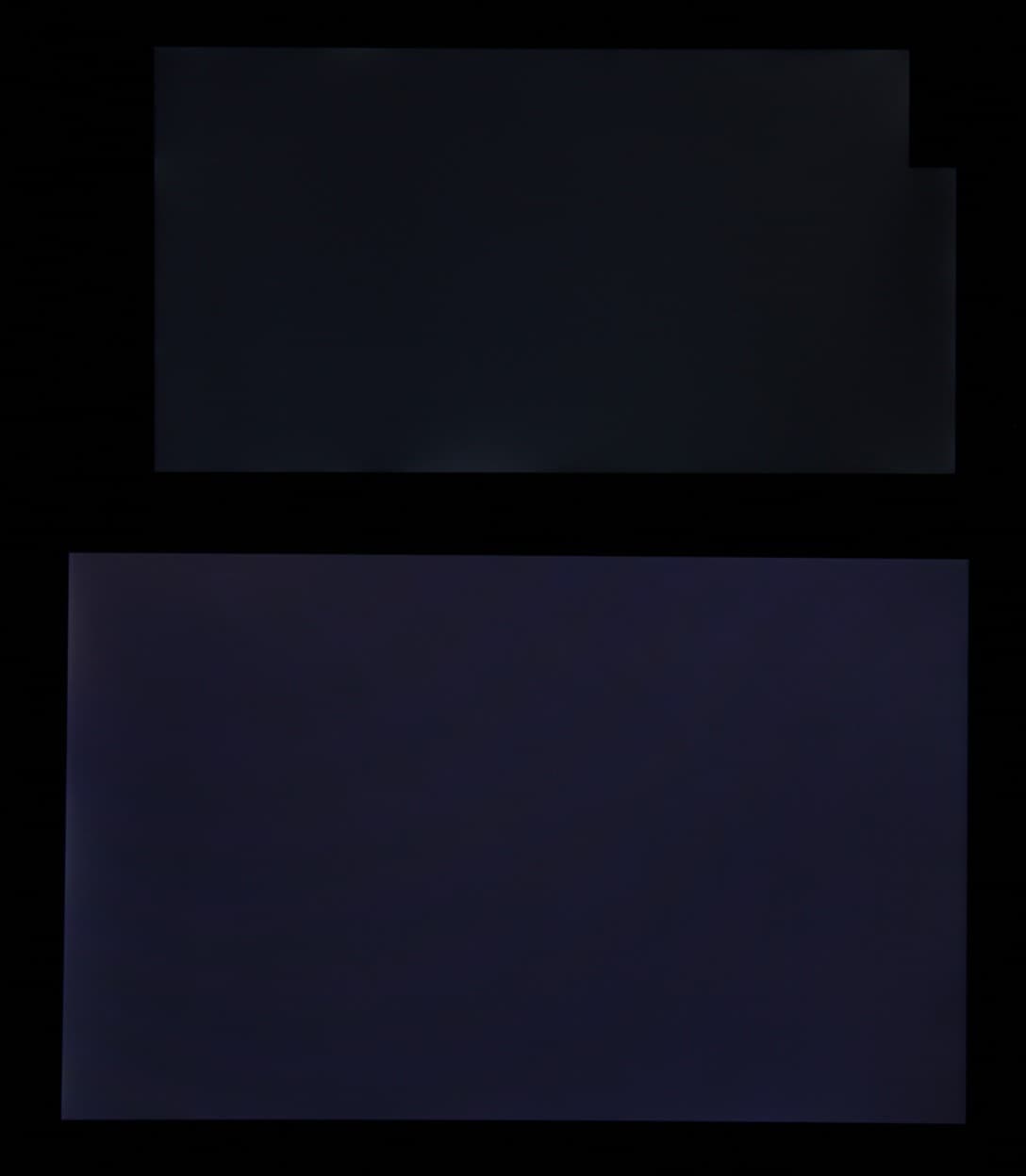Яркость под углом у экранов уменьшилась (как минимум в пять раз, исходя из разницы в выдержке), однако в случае LG V10 яркость снизилась в большей степени. Черное поле при отклонении по диагонали высветляется сильно, но остается условно нейтрально-серым по оттенку. Фотографии ниже это демонстрируют (яркость белых участков в перпендикулярном плоскости экранов направлении у экранов одинаковая!):